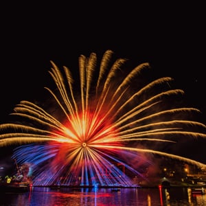 On August 26, 2023, the XII edition of the Fire and Water Festival took place in Nysa. On that day, at the culmination moment, the elements of Fire and Water joined forces on the surface of Lake Nyskie to illuminate the entire event. Thousands of fireworks lit up the sky, accompanied by laser visualization, and our demonstration team, consisting of Artur Zakrzewski and Eryk Duesterhoft under the command of Kajetan Sikorski, performed six times during the event. Throughout the show, we presented four pyrotechnic effects launched from flyboards, backpacks on the backs, and in the hands of Artur and Eryk.